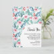 A Flat Thank You Card for a baby shower is decorated with charming watercolor plant images featuring soft pastel emerald and blue leaves, branches and soft pink roses.