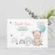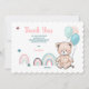 Flat Thank You Cards for 1st Birthday are decorated with a cute teddy bear, balloons and rainbow.