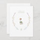 This flat thank you note is reminiscent of an old favorite story book. It features an illustrated mother goose in a crest of garden flowers. The back features a a simple branch of budding blue flowers.