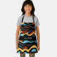 Flat Waves Yellow Blue Retro Geometric Pattern Apron