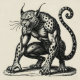 A surreal humanoid leopard stands frozen between instinct and thought, blending human tension with animal alertness. Rendered in dramatic engraving lines, it captures a strange balance of fear, curiosity, and raw energy.