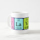 Flavio spelled out as F La V I O (Fluorine Lanthanum Vanadium Iodine Oxygen) on a mug for the scientist in you.