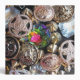 A photo of shiny metallic buttons and rhinestones at a flea market.