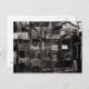 A warm toned black and white photo of many weird and wonderful things displayed in a cage like pigeon hole shelving unit at a flea market.