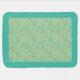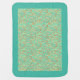 The design of this blanket is a stylized iridescent topical waters with shades of turquoise and coral red accent.