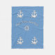 Personalize with your ship's name above a central image of the Ship's Wheel. In each corner is an anchor with rope. ***Part of coordinated set - BKM1d.