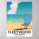 Fleetwood , Lancashire British Seaside travel poster of a old striped deck chair on the sandy beach during a pleasant warm day.