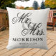 Flemish Minimalist Elegant Script Mr and Mrs Throw Pillow. This is a simple and minimalist design style pillow with an elegant flemish custom script, you can add family name and wedding date, established year, etc. This is a perfect gift for newlyweds new home.