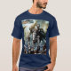 My 11 yo wore adult XL (5’7” 165#). The 8yo is small framed. She wore adult small and tied it in the back. Grandma wore adult large with long sleeve shirt underneath. Tall girl adult medium. Dark haired male adult large. Good quality dark Heather gray, Gildan brand shirt. -it was next up from basic choice and cost about $20 per shirt. Not too thick or thin. Washed and dried well, no major shrinkage. Not see-through. Can wear a bra under it fine. Screen print is just as shown and well done, front and back.