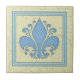 A faux finish, antique ivory style fleur de lis, with squiggly flourishes, border stripes & age distressing.