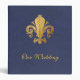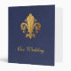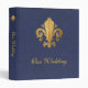 Our wedding binder. Fleur-de-lis on blue textured background. Replace placeholder text with your info.