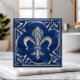 Fleur-De-Lis - Art Nouveau - Blue Marble and pearl Ceramic Tile