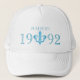 Show off your age with this cool aqua blue fleur de lis year hat. A great gift idea for Christmas or birthdays. Reads MADE IN 1992. Or customize with your special words and date. Designed by Sarah Trett.