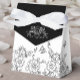 A wedding simple black and white favor box. Customize with your initials. Original fleur de lis with spring flowers, leaves and butterflies hand drawing and design by Sarah Trett for www.mylittleedenweddings.com