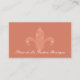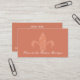 A chic custom business card for a fashion boutique, gift shop or designer. This exclusive design features an elegant Fleur de Lis an original design by Mango Moon Studio set against a coral-colored background, creating a visually stunning and memorable first impression for your business.