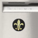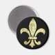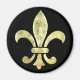 Round magnet with an image of a gold leaf fleur de lis on black. See the entire Cancan Magnet collection in the PARTY FAVORS section.