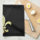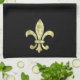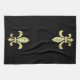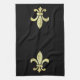 16” x 24” black kitchen towel with an image on both ends of a gold leaf fleur de lis. See matching cloth napkin, paper cocktail napkin, cloth placemat, paper placemat and coasters. See the entire Cancan Kitchen Towel collection in the FOOD/BEV | Linens section.