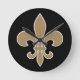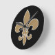 Fleur de Lis Gold with White and Black Outline Round Clock