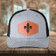 A cap with a leather patch featuring a Fleur de Lis for a royal gift!