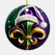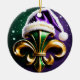 Fleur De Lis Merry Christmas Design Ceramic Ornament