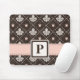 A pretty monogrammed pink and brown fleur de lis mouse pad can be customized and personalized with your monogram initial. Design © Chrissy H. Studios, LLC. All Rights Reserved.