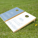 Give your guests a way to connect in every sense, with this fun personalized lawn bag toss cornhole game in pretty dusty blue and white. Great as an icebreaker and makes a great gift for the newly weds to keep for future family gatherings. Can be personalized with your own fun quote (or use ours) and add your own names, plus monogram initials. Other matching items are available. Original hand drawn fleur de lis style monogram and blossom, vines and butterflies border and design by Sarah Trett for www.mylittleedenweddings.com