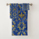 Fleur-de-lis pattern blue marble and gold bath towel set
