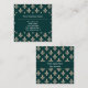 Fleur de Lis Pattern, French, Royal, Cream, Green Square Business Card