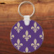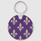 Fleur de Lis Pattern, Royal French Cream on Purple Keychain