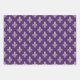 Fleur de Lis Pattern, Royal French Cream on Purple Wrapping Paper Sheets