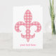 Fleur de lis Pink Gingham Greeting Card