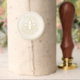 Before the wax hardens, gently and evenly press the wax seal stamp into the melted wax, ensuring it's centered.