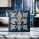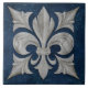 Fleur-De-Lis White and Blue Marble Ceramic Tile
