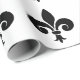 Wrapping paper shown in a black and white Fleur De Lis print. Customize this item or buy as is.