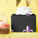 Bold purple and white fleur de lys pattern on black background makes this a great wrap for all occasions.