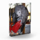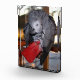 What a sweet facial expression on this African Grey Parrot as she preens her back and bright red tail feathers.