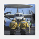Flight deck directors watch as pilots of an E-2C Hawkeye start-up their engines featured with aircraft.