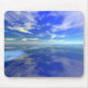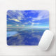 A wide angled view of water and sky, giving the impression of flying over water, maybe in one of those out of body experiences. A 3d CGI design.