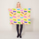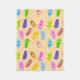 A warm and cozy fleece blanket featuring a colorful flip flop pattern. A super cute novelty gift idea for someone who like sandals, the beach, and summertime, and a blanket to keep them warm and cozy for those less than summery days.