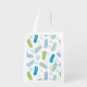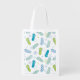 I own a lot of reusable grocery bags, but this one holds its box shape and simply stands up on its own even if there is nothing in it. Its stiffer than your regular reusable bag too, and the material is water resistant. I poured water on the exterior and it didn't penetrate inside to the other side. I'm buying a couple more. Wish I knew how durable these bags were or I would have purchased a few more with my initial order. I also like how it folds and buttons up when not in use, making it easy to put into a handbag or luggage. I haven't used this bag yet, as I purchased it for travel use, like when you're at the airport and need to small sturdy bag to place any airport purchases in, like food, souvenirs etc. I can tell you when you first see this bag, it looks very cheap, but after closer inspection of the material and the seams its a very sturdy reusable bag. I tested it out by putting some really heavy objects inside and I could not observe any stress to the bag at all. Another thing I like about it, is the fact the medium size that this is makes it easy to just carry it in your hand without the bottom of the bag scraping the ground, like most other bags do when you're short. That alone, deserves 5 stars. I just wish there were more colors to choose from! The PDX Airport Carpet printing looks just like the photo, and using this bag during travel might be a conversation piece when/if a native from Oregon happens to see it.