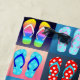 This beautiful beach towel features a pop art inspired pattern of flip flop sandals in different colors and patterns.
