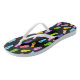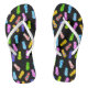 A cute pair of flip flops featuring a colorful flip flop sandal pattern on a black background! The perfect vacation accessory for someone who loves flip flops and bright patterns.