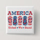Cute patriotic flip flops in red and white stripes and blue and white stars. Text says AMERICA UNITED WE STAND. Fun way to show your patriotism and American pride on the 4th of July or anytime. PinkInkArt original!