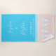 The bride and groom will love personalized beach towels as a keepsake gift for a seaside wedding. All text is simple to customize. Pastel coral and light turquoise blue design features bright white typography, names, initials, wedding date, location, and monogrammed flip flops on an abstract modern minimalist beach. The handwritten style script calligraphy resembles sky writing above the ocean. This tropical destination wedding accessory makes a stylish honeymoon or anniversary gift to commemorate your special day celebration in paradise.