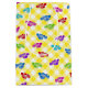Colorful flip-flops on white and yellow gingham background.