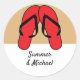 Nothing says summertime like a pair of fun flip flops in vivid red like the graphic decorating this easy to personalize sticker.
