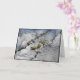 Delicate floating white cherry blossoms combine with rippling pond reflections of blue sky, branches, and white clouds to create a birthday card with an interesting abstract composition.
