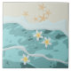Floating Frangipanis on Beach Wave Meet Starfishes Ceramic Tile