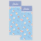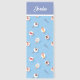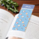 This fun bookmark features an aerial view-inspired pattern of people relaxing on inflatable rings and swimming in a light blue pool. The scene includes various individuals lounging and enjoying the water. At the top, a solid periwinkle blue band provides a space for personalization with a name in a flowing white script font. This bookmark brings a summery and relaxed vibe to your reading.