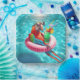 A macaw is lounging on a pink inflatable ring in a sparkling blue pool wearing sunglasses and enjoyin a cocktail